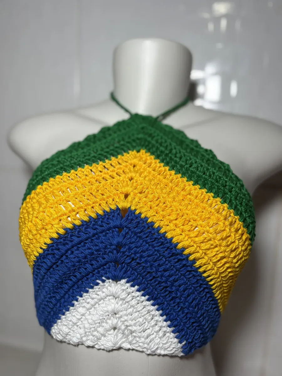 Top Cropped do Brasil , Cropped Verão, Top trico, Cropped costa nua, Cropped linha Croche, Cropped copa do Brasil